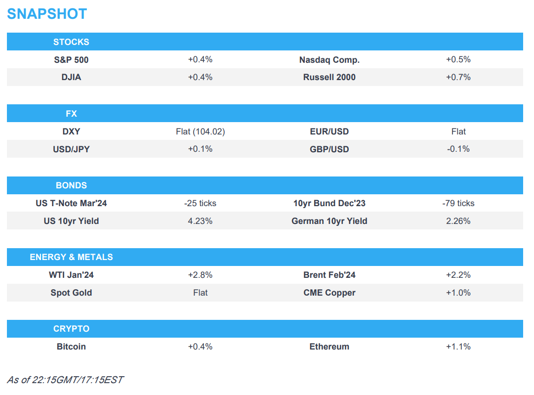 - Chinese CPI and PPI printed softer than expected for November with CPI YY at -0.5% vs. Exp. -0.1% (Prev. -0.2%).