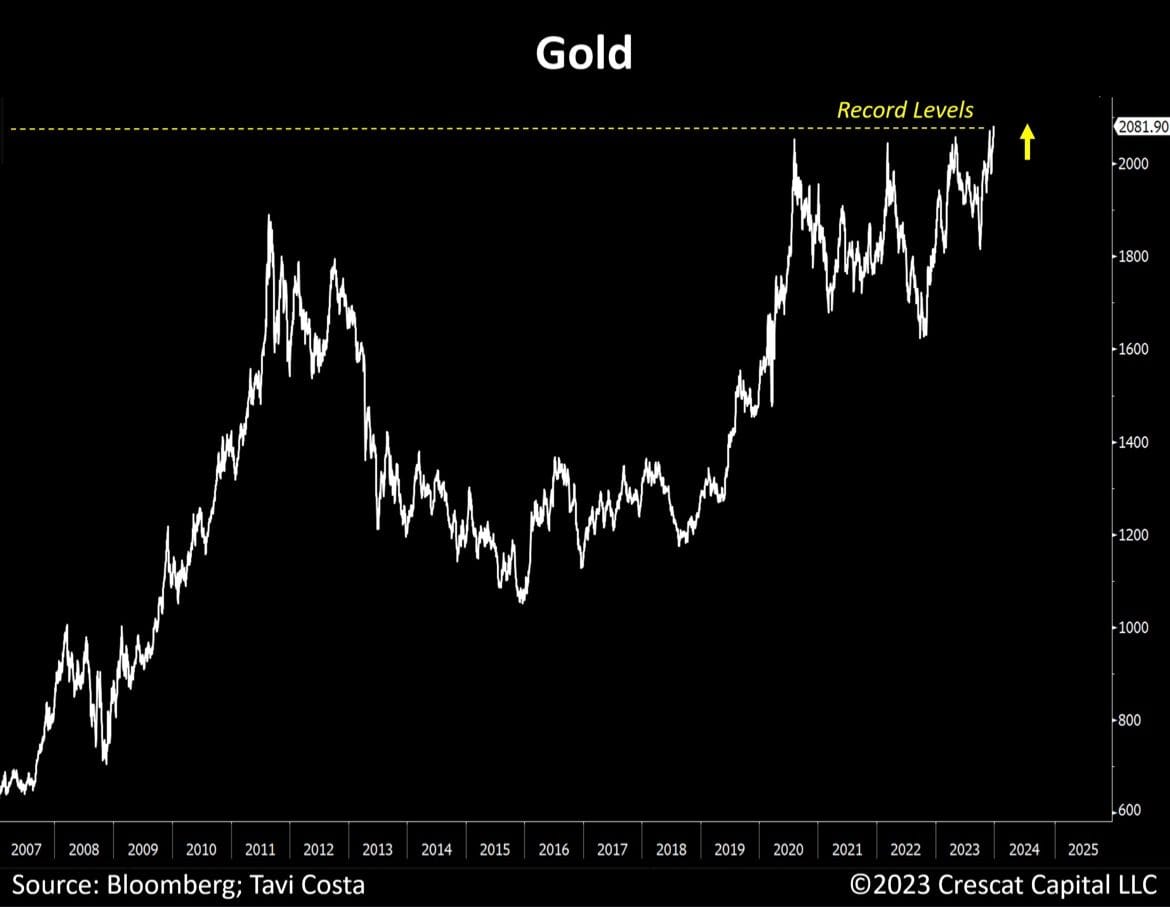In one of the least noticed macro moves in a very long time, gold just reached record levels today.