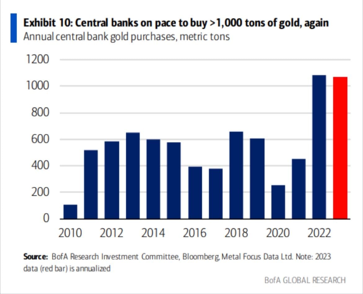 "Central banks are on pace to buy over 1,000 tons of gold again.