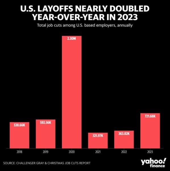"US job cuts fall back in December but nearly double for all of 2023