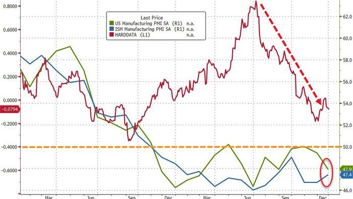 While the 47.4 print is up from November's 46.7 (and better than the 47.1 expected), it is still a contractionary signal