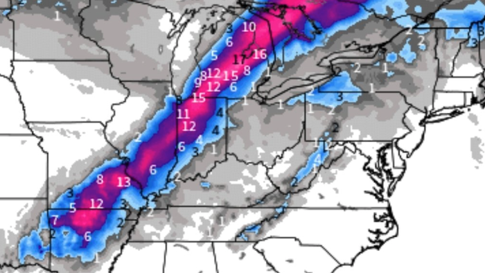Focusing on what readers are most interested in: There's a significant possibility of heavy snowfall across the Midwest to the interior Northeast.